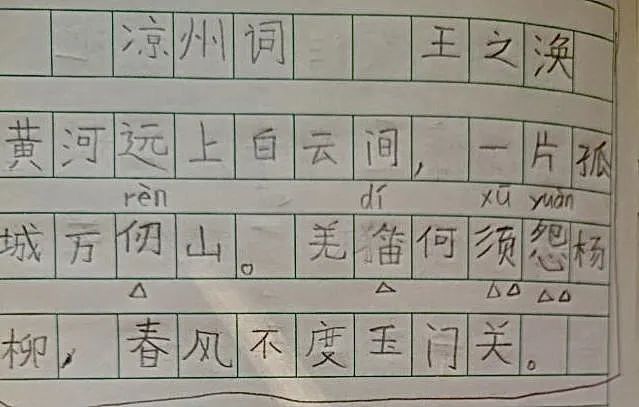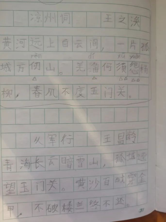 娃默写的《凉州词》和《从军行》3、边玩边学