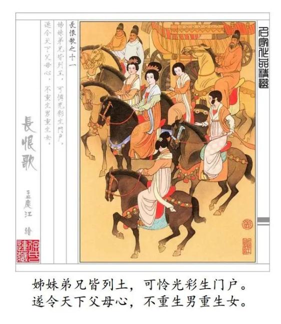 《长恨歌》背会很久了,娃还是同我时常翻看《长恨歌五十七图》的画面,会讨论马的不同姿态能否说明事情的轻重缓急;绘本里不同的人物听到“渔阳鞞鼓动地来”时的不同表情与动作……