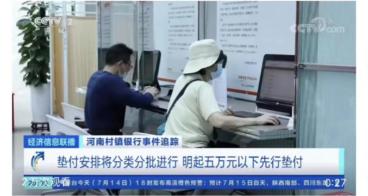 ▲14日,针对近日网传的“停贷事件”,农业银行、建设银行、兴业银行等超10家银行相继发布公告进行回应,称当前部分地区停工缓建和未按时交付楼盘情况,涉及的业务规模较小,总体风险可控。▲据悉,河南村镇银行事件先期启动了分类垫付资金安排,7月15日起将对5万元及5万元以下的客户先行垫付。为确保垫付工作稳妥实施,采取分批垫付方式。同时,考虑优先保护普通小额客户合法权益,选择先行垫付单家机构单人合并5万元(含)以下客户本金。待5万元以下客户本金垫付工作完成后,下一步将陆续启动其他金额客户垫付工作。垫付资金来源于地方公安机关在案件查办过程中,查封、扣押、冻结的新财富集团部分资产处置变现所得资金。