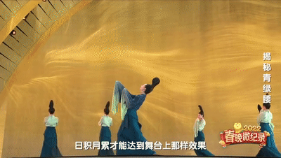 在一次次的排练和感受中,孟庆旸的“青绿”实现了与当下的联结,“最开始,当‘青绿’望月,垂目转身,把观众带入到《千里江山图》的画卷中,让这幅画活起来;最后,当一座座小山变幻成险峻陡峭的山峰,就如同‘会当凌绝顶,一览众山小’。透过画家王希孟的双眼,眺望祖国大好河山,仿佛在问观众:你们看到古人笔下中华的大好河山了吗?看到古人对后人的馈赠了吗?我想,那一刻,每个人都能感受到,‘这很中国’。”/02/