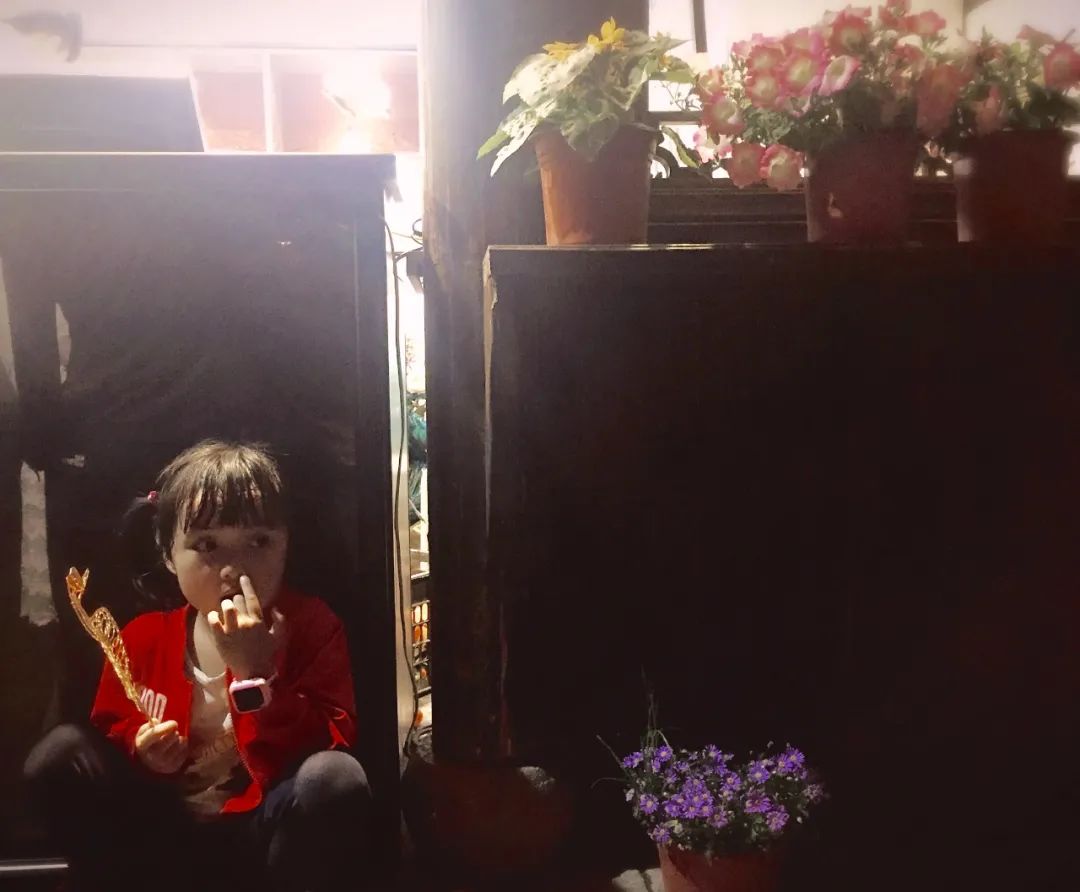 女儿4岁的时候,带她在南京逛了一天。在我买茶水的时候,她安静地蹲在窗台下吃糖。本来看光线太暗想删掉,后来发现在微弱的光线下,她和那几盆小花一样,即便在暗夜里,也仍然可怜可爱,悄然成长。