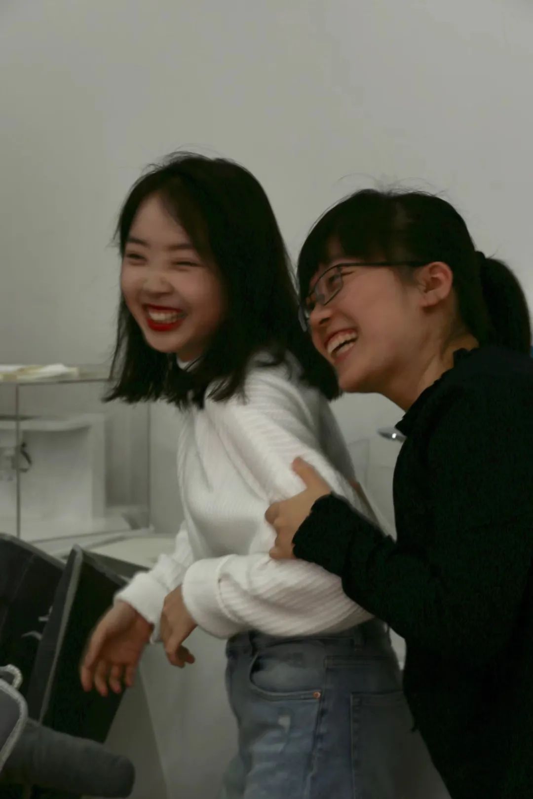 3年前的一个工作日,和两个很要好的同事抱着拍两张“艺术照”的目的在午休室临时“搭建”起了摄影背板。本是一本正经拗造型,不想没几秒就破功了,被同事成功抓拍!虽然我们笑容狰狞,画面模糊不清,背景也是乱七八糟,但这张照片我一直保留至今。