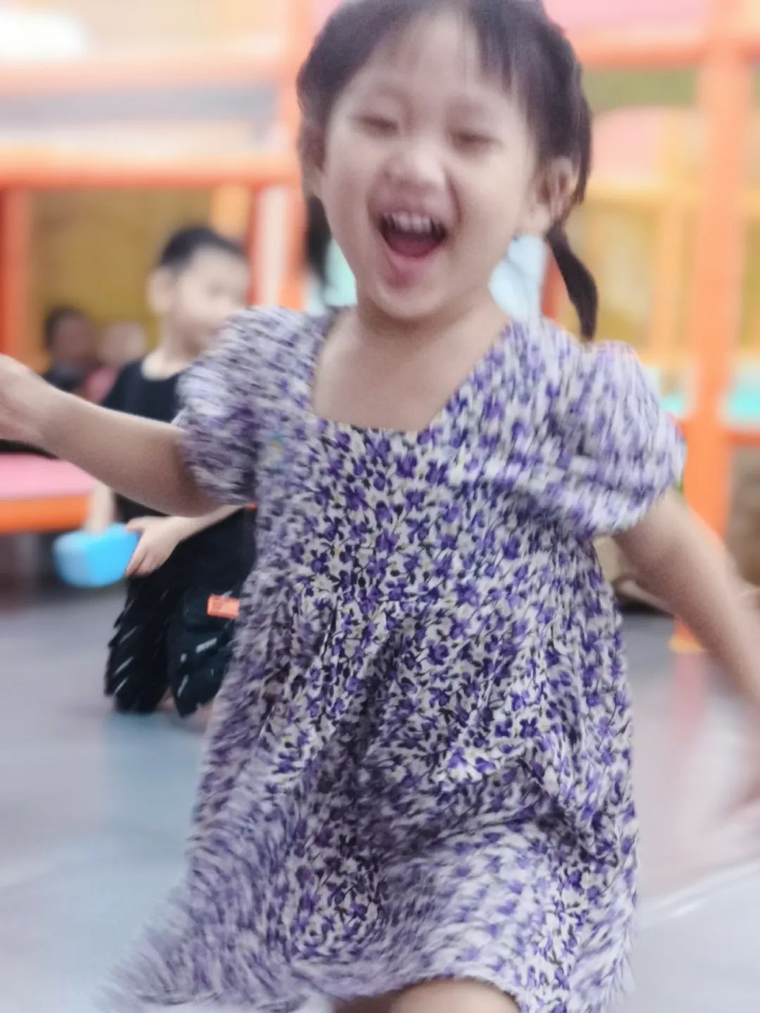 喜欢给娃拍照,又追求自然不摆拍。要给娃拍一张完美的照片真挺难的,100张里只有2张是不糊的。这张照片就是一张不舍得删的废片。彼时的小朋友不到3岁,刚刚勇敢地主动上前向其他伙伴介绍自己,说完“谢谢”之后就飞奔向我,神情里满是兴奋。