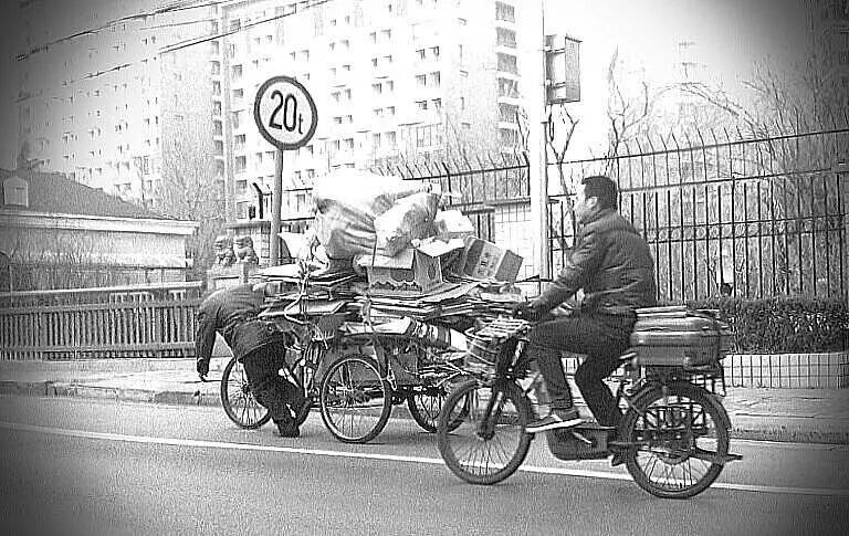 当时坐车经过一座桥,看到有位收废品的师傅吃力地躬身拉车前行,本想抓拍这一瞬间,突然一辆电动车从后面闯入,破坏了原有的构图设想。但生活不就是如此?没有剧本,都是直播。《树在动还是摩天轮在转》