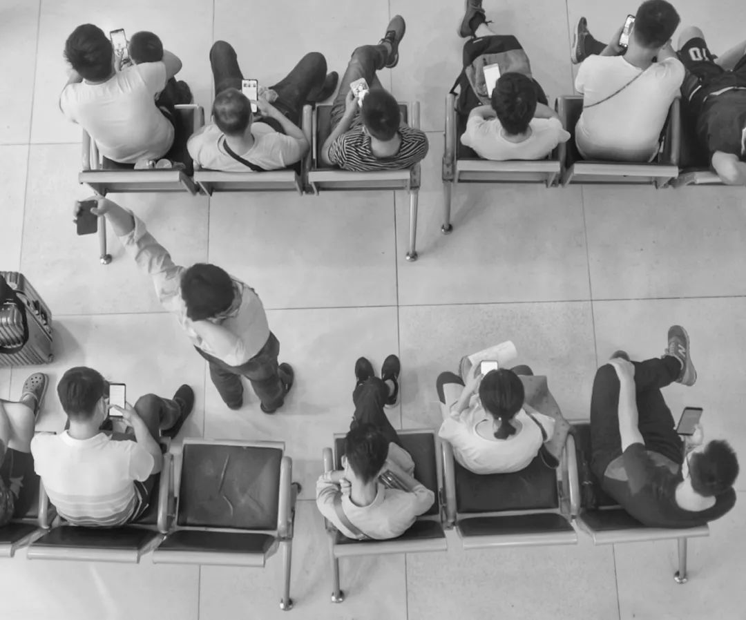 在办事大厅二楼,正从上往下拍摄刷手机的人群,突然一人站起身,伸懒腰并四处张望。当时很遗憾他破坏了画面的和谐,现在想想也颇具象征意蕴。有了手机的我们享受着信息快餐的便捷与丰富,但是也放弃了传统的沟通方式,人与人之间反而形成了“孤岛”。在这种无意识的集体行为背后,更多的是人们心灵的孤独、疲惫和迷惘。《日落·印象》