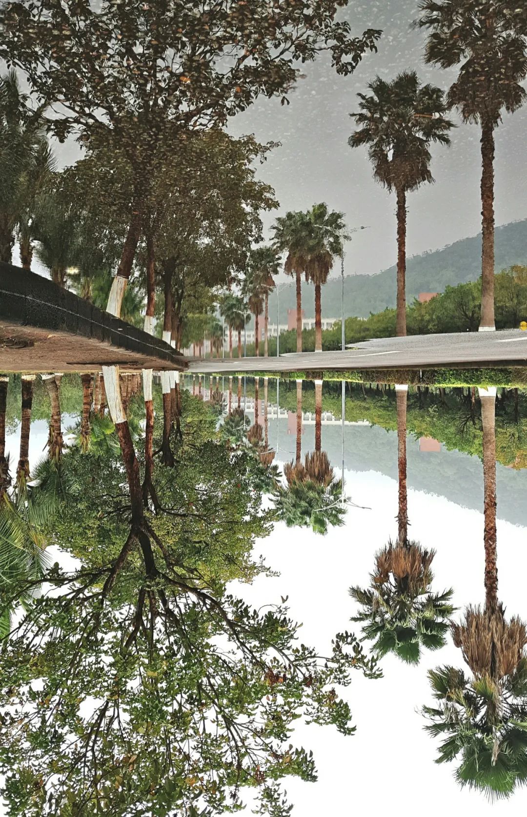 刚好阵雨初歇,走在放学的路上,俯身看到一滩积水,突然想从另一个视角看看不一样的。不过拍的时候没有调整曝光,没拍到画面和倒影一样的效果。《匆匆》
