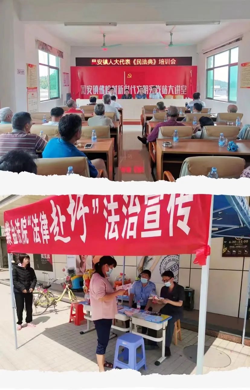 今年上半年,开展“法律赴圩”“法治进乡村”“法治大讲堂”等宣传活动10次,发放《中华人民共和国民法典宣传手册》《家庭教育促进法》《防范电信诈骗》《打击整治养老诈骗》等宣传小册子共2000余份,现场解答村民法律咨询300余人次,引导群众增强法治观念,同时加大以案释法宣法力度,将巡回审判车开到田间地头,“零距离”开展普法宣传和法律咨询,面对面传递司法温度,达到“审理一案,教育一片”的效应。