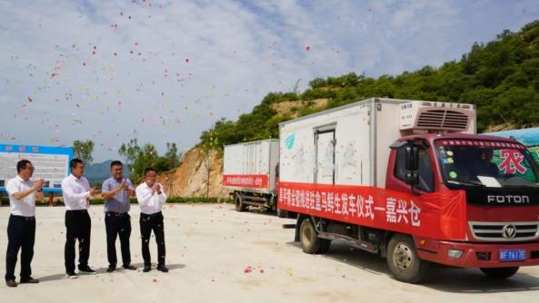 仪式结束后,与会领导还到史家寨乡史家寨村,举行了“盒马村”揭牌仪式和黄金蜜桃发车仪式。盒马自2015年成立以来,高度重视农业发展,秉承着绿色可持续发展理念,着力打造农业强、农村美、农民富的乡村振兴之路,运用大数据和技术推动农业数字化建设,通过订单农业以销定产,促使农产品标准化、精细化、品牌化,切实解决农户与市场的对接问题,从而推动特色农业高质量发展。2021年5月,集团选派优秀干部赵晓东担任驻县特派员,在产业振兴、电商销售、人才培育等方面全面深化推进帮扶工作,将数字化送进太行深处,把培训送到田间地头,同时通过盒马鲜生平台帮助阜平农产品走向了更为广阔的市场。