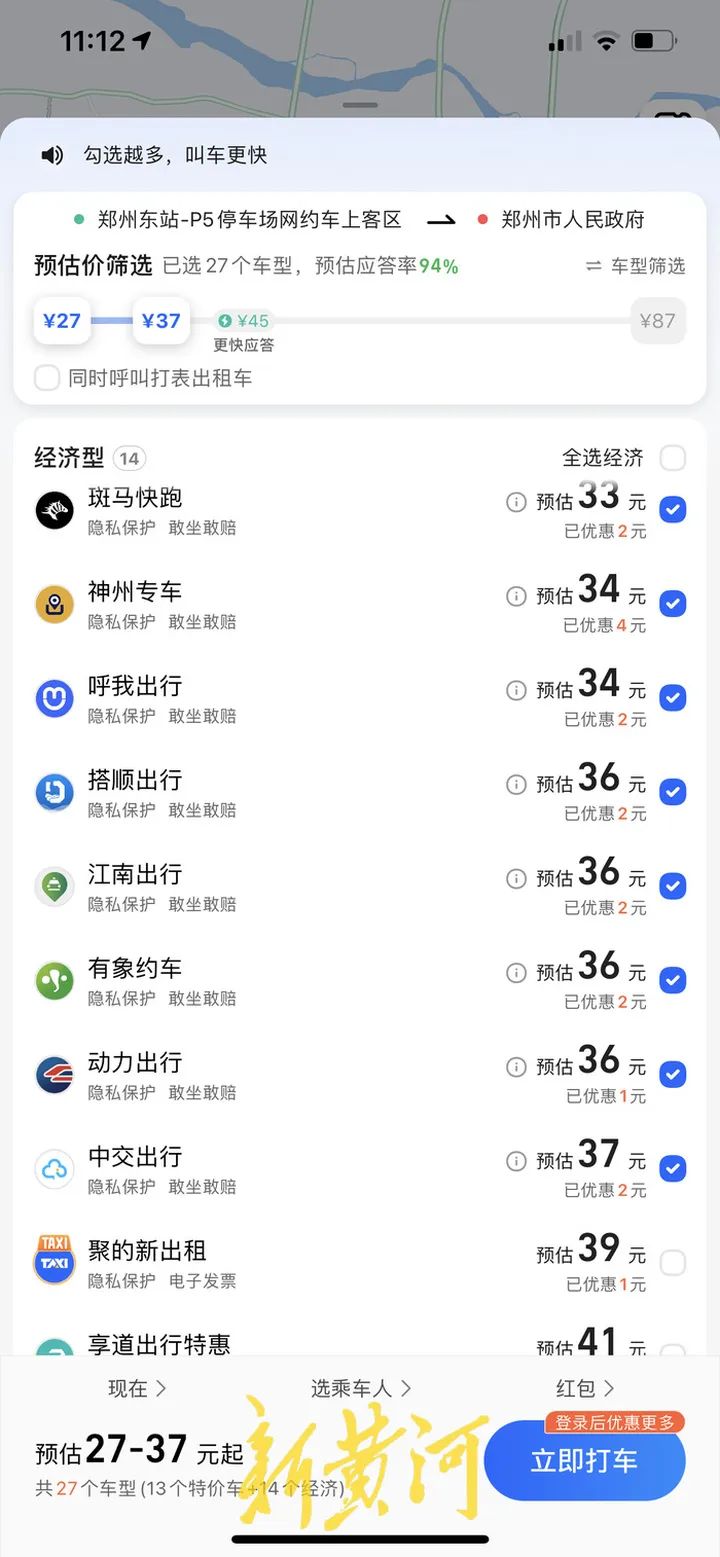 打开高德打车APP,其下有十几家与高德有聚合关系的网约车平台。新黄河记者注意到,7月16日,“有象约车”仍然在高德平台正常接单。