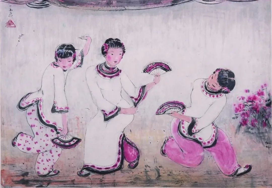 潘玉良,《三人扇舞》,彩墨,1957