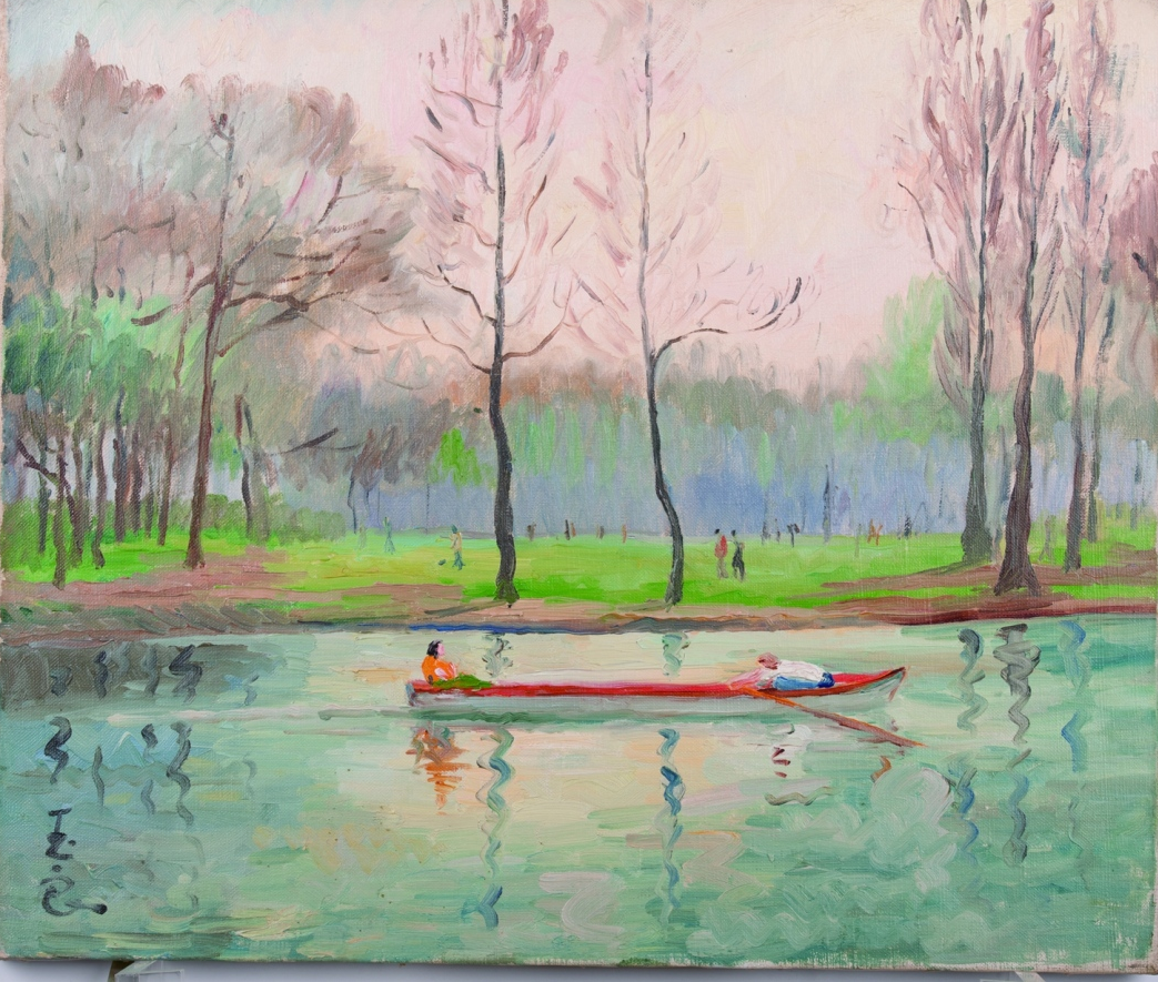 潘玉良,《河上泛舟》,油画