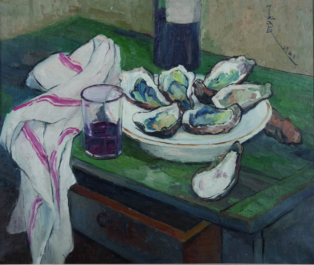 潘玉良,《生蚝与酒》,油画