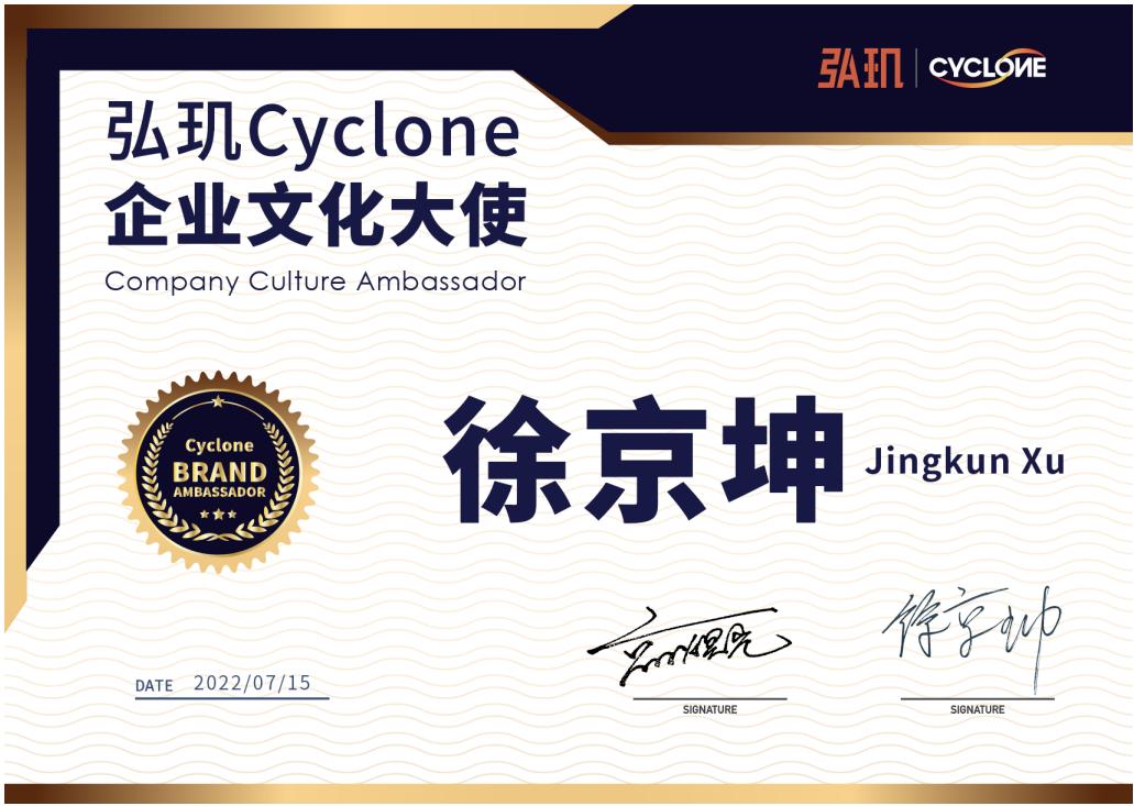 近日,弘玑Cyclone宣布与“中国双体环球第一人”徐京坤先生正式展开品牌合作,弘玑Cyclone创始人高煜光亲自授予徐京坤先生“企业文化大使”称号。作为弘玑Cyclone企业文化代言人,徐京坤亲身践行弘玑Cyclone的企业文化,并将其传播四海发扬光大。