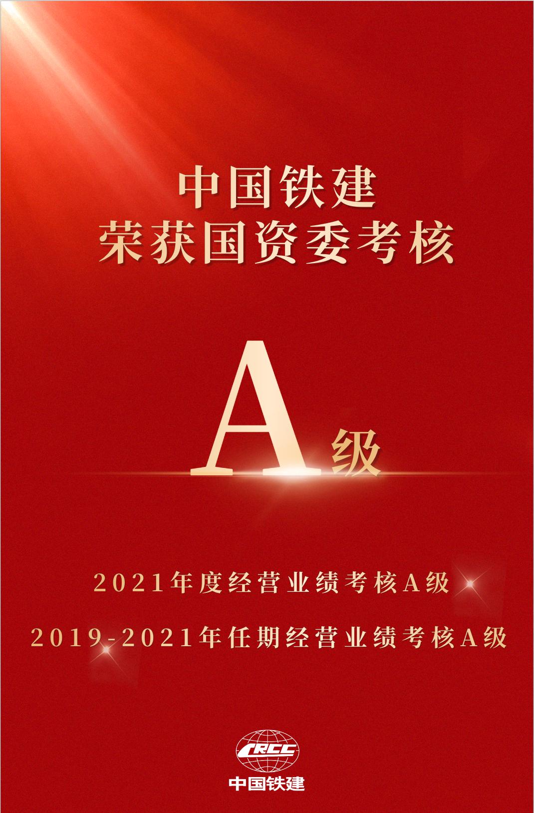 7月17日,国务院国资委正式对外发布2021年度和2019-2021年第六任期中央企业负责人经营业绩考核结果。中国铁建荣登2021年度考核A级、2019-2021年第六任期考核A级名单,并被评为2019-2021年任期“业绩优秀企业”。