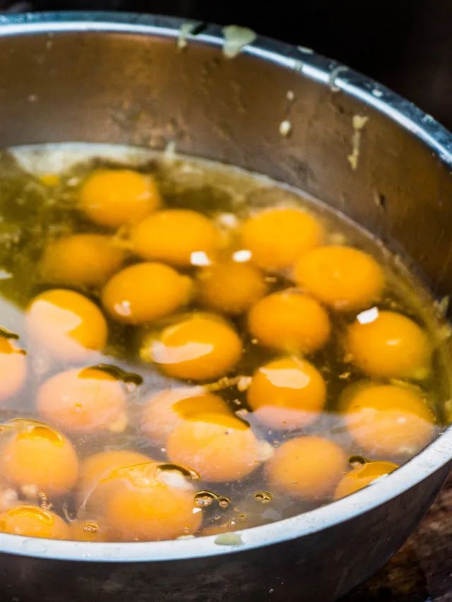 说到蛋,潮汕有一种甜汤叫姜薯甜蛋,放的就是先用白糖腌制、后用糖浆熬制而成的甜鹌鹑蛋。将甜蛋放入煮好的姜薯(也叫小淮山)糖水中,还要成双成对,放单数可是会被嫌弃的。