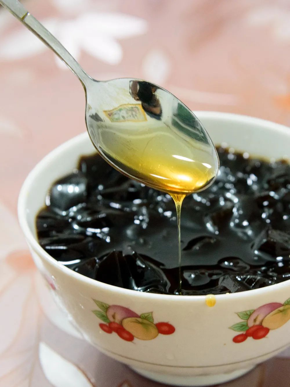 潮汕草粿,也叫黑凉粉。草粿与龟苓膏不同,前者以凉粉草为底,后者以龟甲板磨粉并混合土茯苓。摄影/叶广杰也有人对潮汕糖水情有独钟。