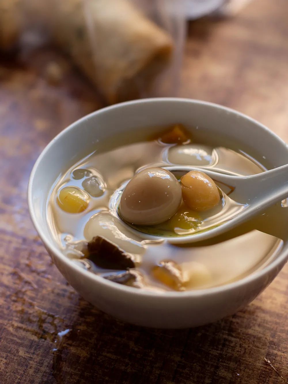 鸭母捻:以糯米汤圆为基础,加入鹌鹑蛋、银杏、马蹄、莲子等。摄影/吴飞
