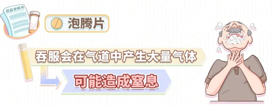 如果直接把泡腾片放入口腔,相当于把嘴当成杯子,药物崩解的全过程都在嘴里进行,短时间内会生成大量气体,影响呼吸,甚至导致窒息。