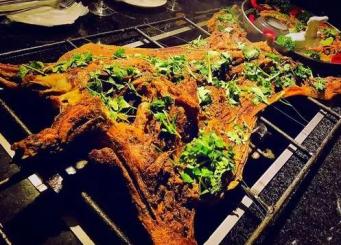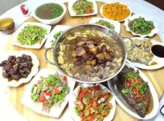 大食堂铁锅杀猪菜、黑猪肉串烧烤