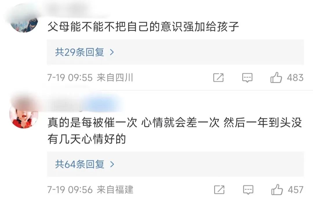 也有网友表示“他们催他们,自己切勿生气”“我妈磨叽我,我都是左耳朵进右耳朵出心大一点。”