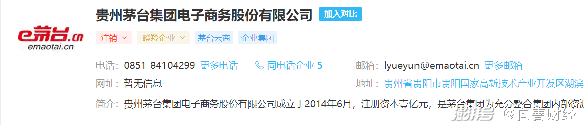 据天眼查专业版APP显示,2014年,茅台就成立了贵州茅台集团电子商务股份有限公司,贵州茅台酒厂股份有限公司持有其25%的股权,该公司之后推出了“茅台云商”平台。但电商公司最终仅维持不到6年。