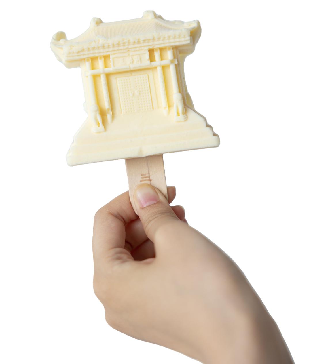 三游洞位于长江三峡西陵峡口的悬崖峭壁上,三游洞文创雪糕则是以三游洞景区大门造型为灵感,将飞檐翘角和大门细节做到了还原。