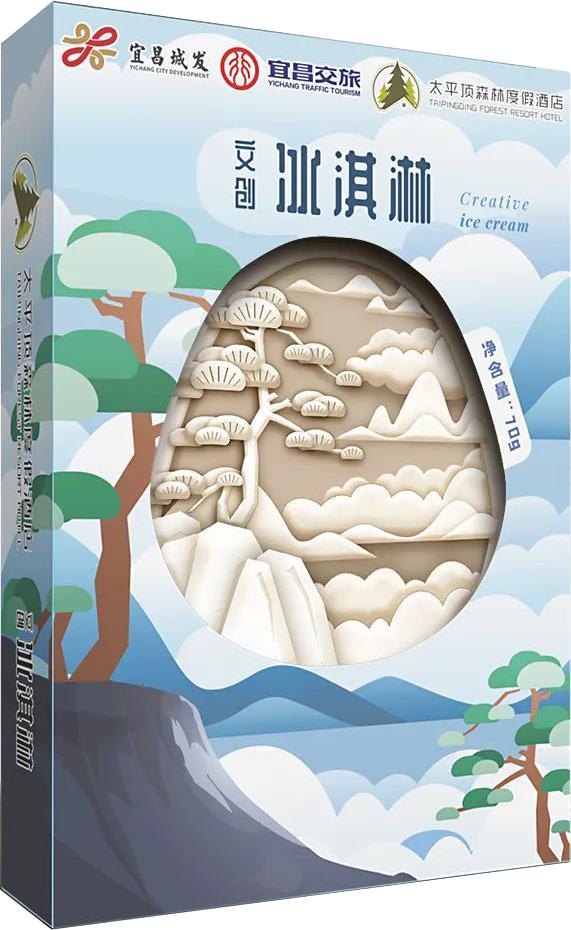 三峡国际房车露营地以门头为标志性代表,打造了一款文创雪糕,高度还原了露营地的优美环境。房车、木屋、云鹤、森林等,一支小小的雪糕,注满了这里的灵魂。