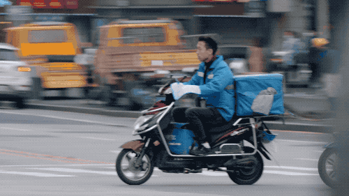 一个个飞奔的外卖员