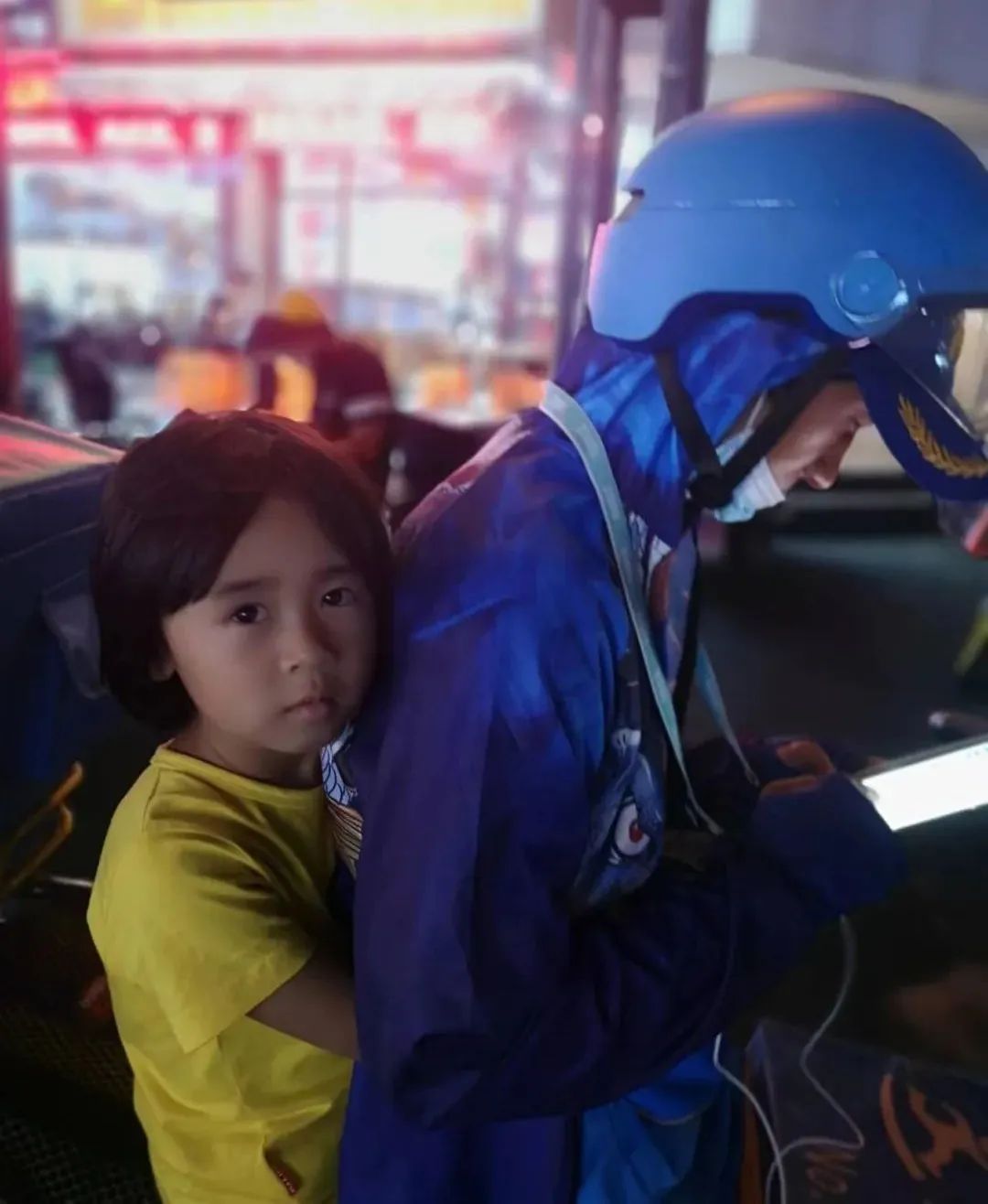 单亲爸爸,出过事故,右手被绞进机器里残了。为了养活女儿,2018年当了骑手,送外卖的时候都要带着女儿。