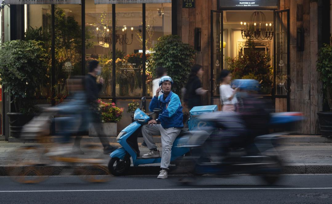 ▲马路上随处可见飞驰的外卖员