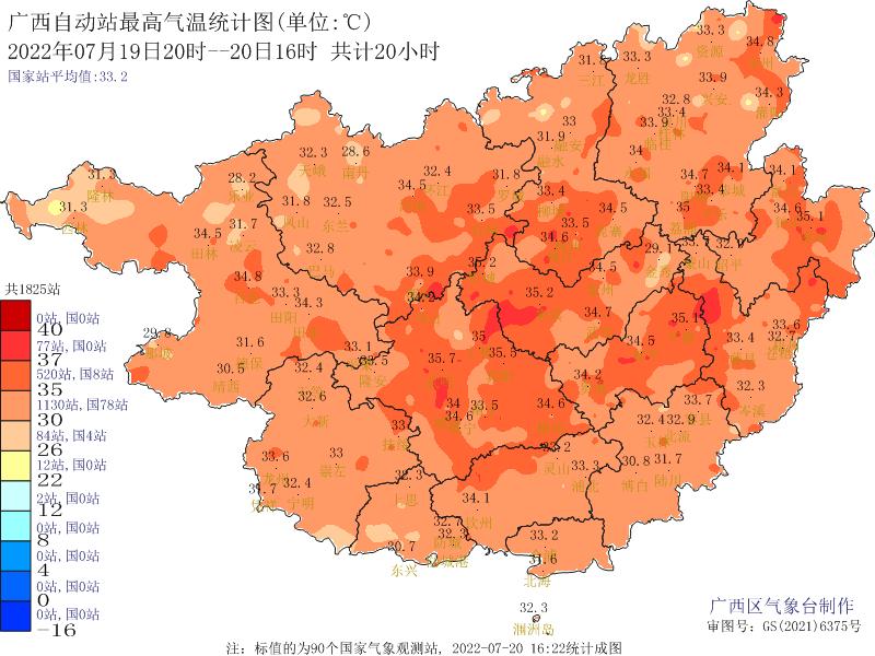广西大部最高气温都被烧到35~37℃