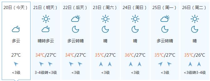 最高气温还被骄阳烤到34~35℃