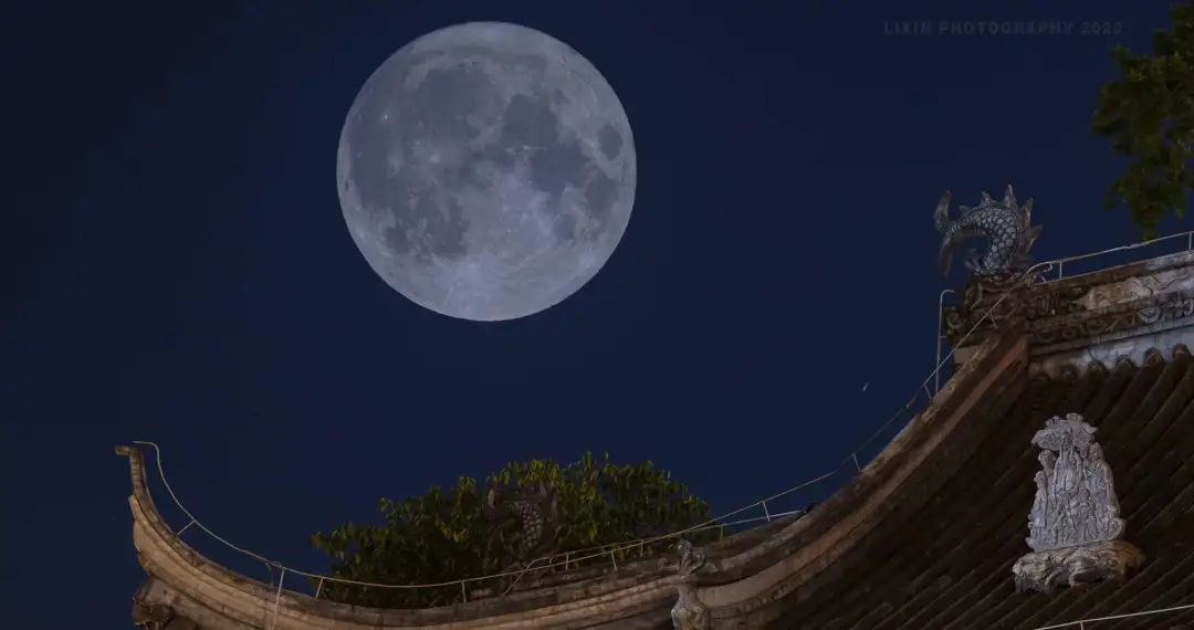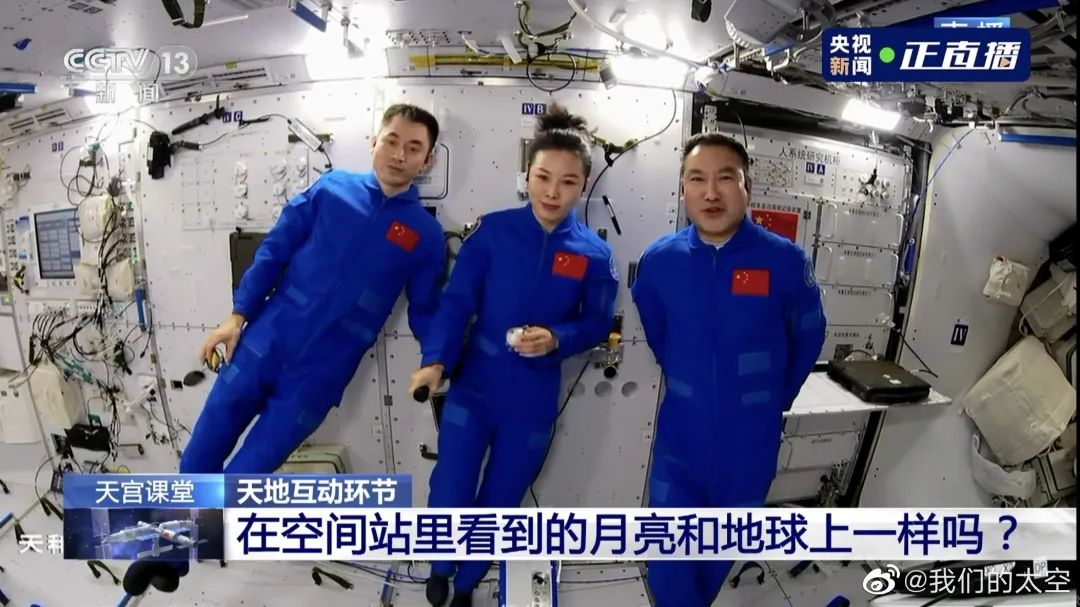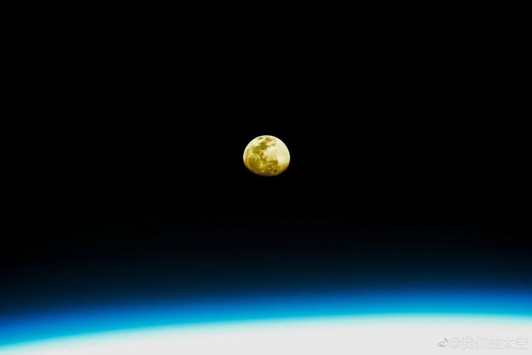 王亚平在天和核心舱拍摄的月亮通过这两张照片