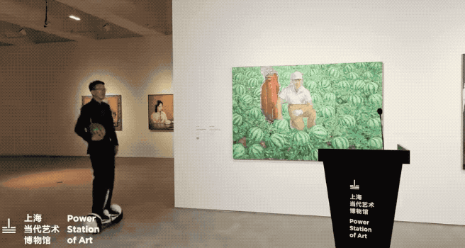 上海当代艺术博物馆:《王兴伟在上海 2002-2008》开幕仪式现场这是一次不断笑场的开幕:北京大兴西瓜和上海8424西瓜,在王兴伟和上海当代艺术博物馆馆长龚彦手中完成换瓜仪式。