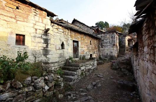 当地布依语称之为“板坡森”,其意是“背靠石山,世居石屋”。形状各异的石头构成了石墙、石檐,让整个村落体现出错落的和谐。