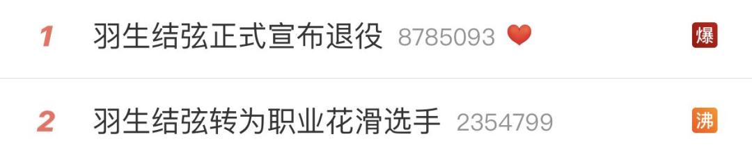 北京时间7月19日下午,羽生结弦宣布正式退役。消息传来,直接霸榜微博热搜第一: