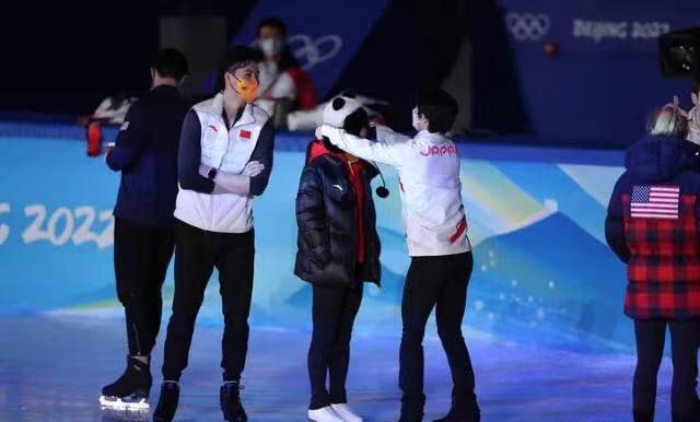 在北京冬奥会表演滑前彩排的时候,导演正在安排大家站位。也许是场地内比较冷,羽生结弦主动把自己的“冰墩墩”帽子让给了中国选手王诗玥。