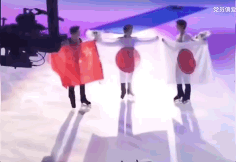更为中国粉丝们熟知的一件事,则是在2017年的世锦赛上。在身披国旗致谢时,细心的羽生结弦发现在镜头里看,金博洋的国旗拿反了。
