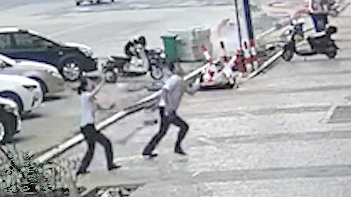 视频中,一名幼童从六楼的窗户中翻出,随后跌落,重重地砸在了二楼广告牌上,随后继续跌落,就在落地的一瞬间,一名男子丢下手中的手机和一名女子冲了过去,徒手一起将孩子接住,避免了二次受伤。