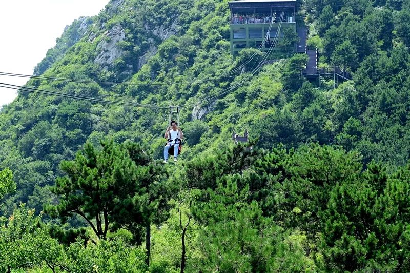 高空滑索从高处向下滑行,在有惊无险的快乐中产生兴奋和满足。