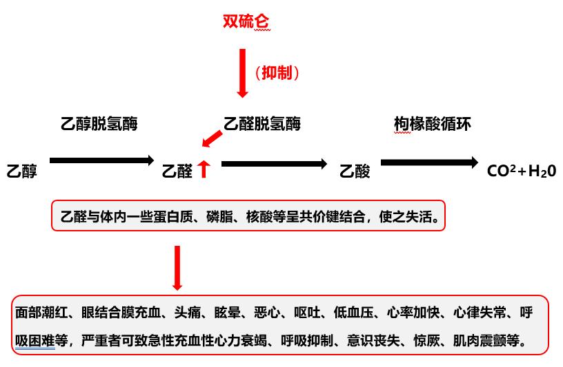 造成高乙醛血症毒性反应引起从而产生恶心、腹痛、头晕、呼吸困难等严重的中毒症状