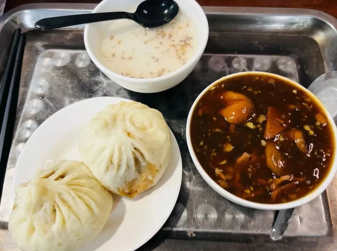 包子皮很薄,蒸熟的时候,葱油就会顺着褶子溢出,基本上一进包子馆,满屋都是葱油的香气。轻轻地一咬,包子里的葱油立马就会蹦出来,面香肉香结合在一块,那叫一个美!