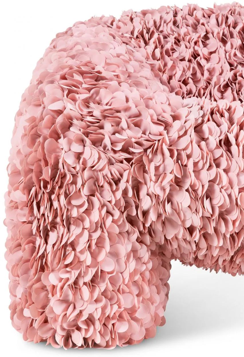 蓬松丰满的外观完全对应了这个作品的名字:绣球花沙发。使用超过 20,000 片织物花瓣,全手工装饰,每一片花瓣都由激光切割模具而成,以防止起皱和磨损。