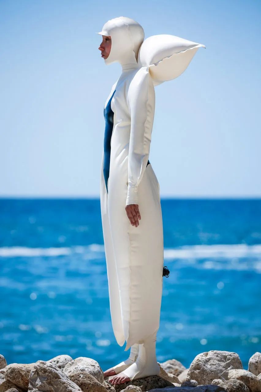 西班牙设计师 SiiGii 用乳胶设计了一种可穿戴的充气泳衣,让你可以漂浮在夏天的泳池休息。这款名为 Floating Above Limits 的夏日充气系列的一部分,旨在帮助一小部分对太阳过敏而无法享受日光浴的人。