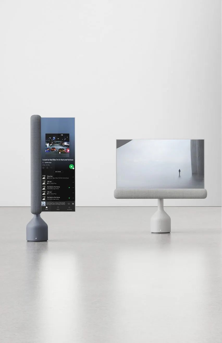 这个名为 Totem 的显示屏充分利用OLED可卷曲的技术,让整个屏幕完全缩回至原来的尺寸,变成一个独立的扬声器。