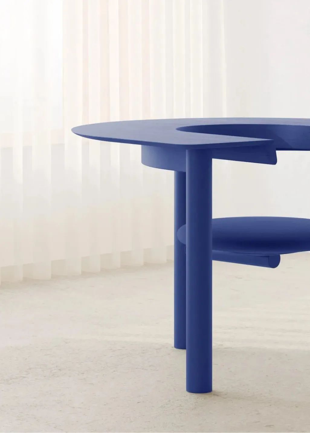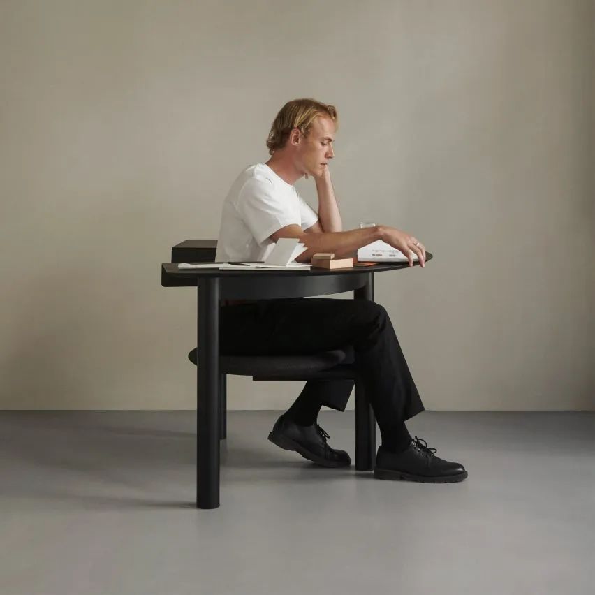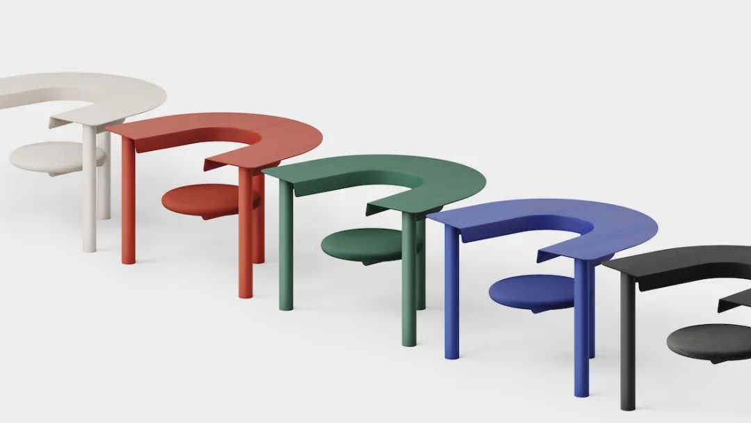 这个名为 Sui 的家具作品包括一个半圆形桌面和一个圆形旋转座椅,由伦敦工作室 Raw Edges 设计。这款木质的办公桌椅是一个高效的办公空间,椅子可以进行 360 度旋转,将半圆形桌面用作办公桌,防止长时间坐在同一位置。