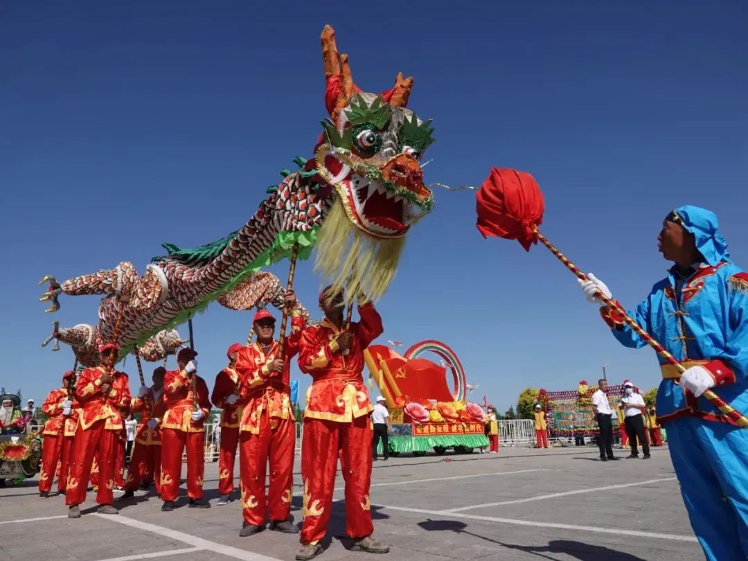 在人们期盼的目光中,被列入自治区级非物质文化遗产名录的“四脚龙舞”进行展示。随后,人们还欣赏到了被列为乌兰察布市级非物质文化遗产项目的“跑毛驴”“五鬼闹判”“民间灶火”以及抬阁、脑哥等表演,近距离感受到隆盛庄镇非物质文化遗产的独特魅力。开幕式文艺演出在歌舞《隆腾狮跃·千载霞光》中拉开帷幕。歌曲《万里茶道万里情》《饮马河畔》,舞蹈《驼铃声声》《隆兴百年》,让人们的思绪从隆盛庄商业繁荣的历史回到文旅融合发展的现在,在艺术表演中感受文化古镇的今昔韵味。