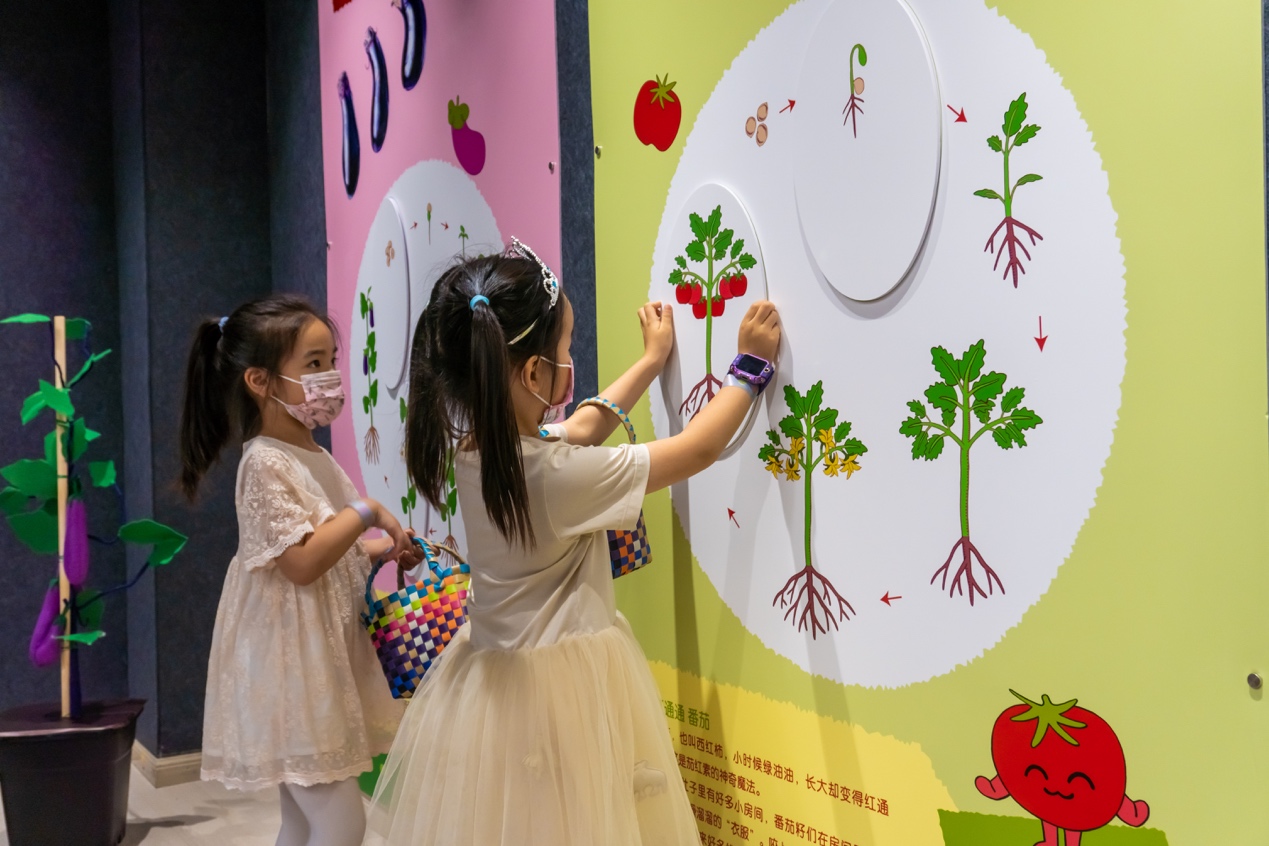 “谢谢你的菜”原创展面向3-8岁亲子家庭,由笛德侯文化实验室朱纪蓉博士策展,以少年儿童出版社出版的“我爱蔬菜”系列图书为基础,贯穿萝卜、番茄、卷心菜、茄子、南瓜、土豆等多种蔬菜从种子到萌芽,再到开花结果,成熟收获的生命历程。展览分为“蔬菜的生长”“美丽的蔬菜”“钻进蔬菜肚子里”“大丰收:摘菜去!”“把菜带回家”五个单元,邀请家长与孩子共同走进一个寓教于乐的“都市菜园”。
