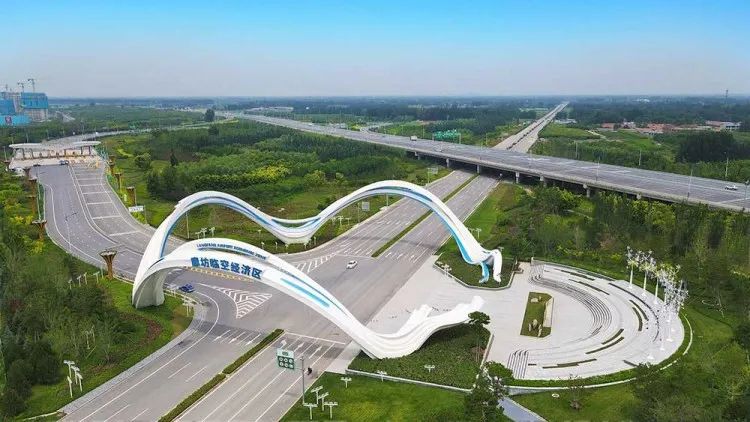 2022年7月11日拍摄的廊坊临空经济区临空之门及周边景观。廊坊临空经济区高起点、高标准、高效率推进市政设施、公服设施、综合交通、生态建设,全面打造功能齐备、景观秀丽的现代化国际新城。“凤凰”展翅,廊坊腾飞。北京大兴国际机场北线高速内通外联,让廊坊与首都“同城”,更让新生的廊坊临空经济区,敞开胸怀拥抱世界。