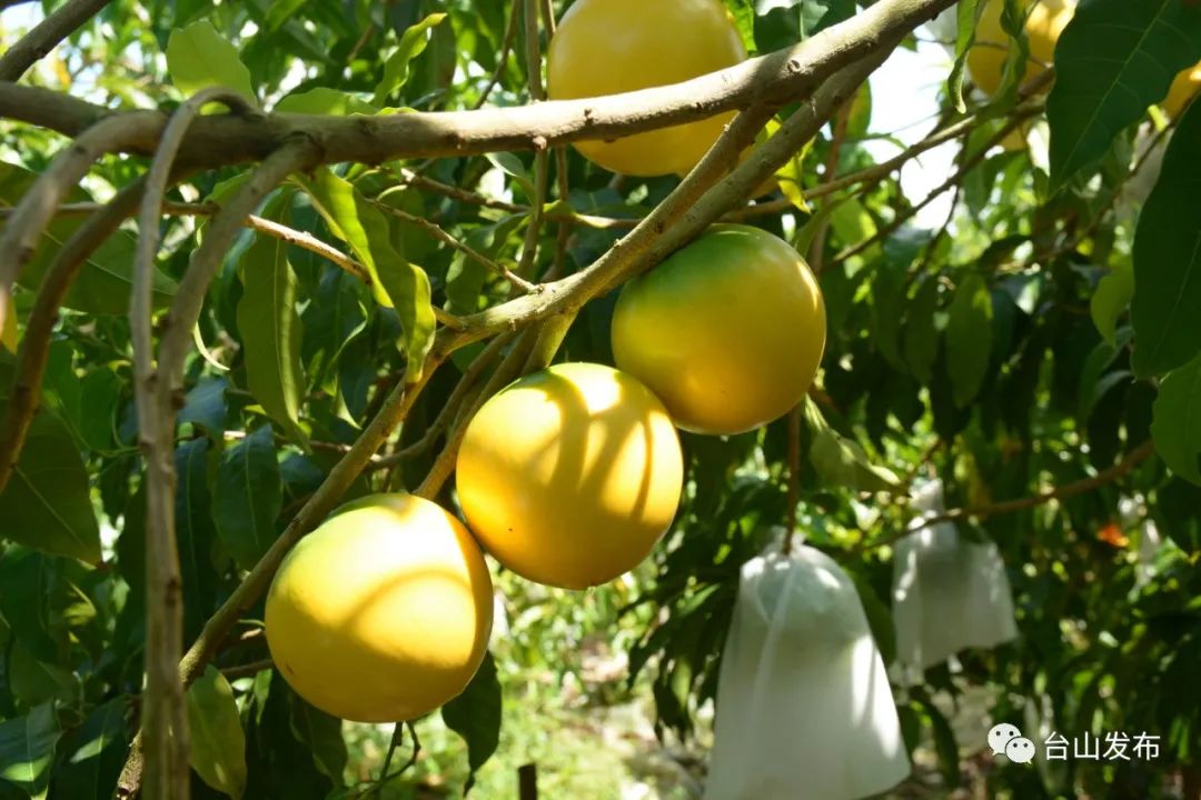 “黄晶果和其他水果相比,第一见效快,嫁接苗今年种下,明年就可以挂果了,第二黄晶果一年可以有两季以上的果,两季大概有3-4批次果。”禤文生介绍,在一次偶然的机会,他接触到黄晶果,并于2014年带领团队开始引种。目前,该团队已成功培育了十多种适合台山生长的优质黄晶果品种,种植规模达500多亩。在《江门市“向森林要食物”三年行动方案》(2022-2024)中,黄晶果被列入“具有挖掘潜力的食药用经济林品种”,计划在台山通过选种选优,栽培技术等研究,打造具有较高质量、声誉及品牌影响度的产品。